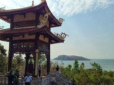 Trên ngọn núi Thọ Sơn nhìn xuống bãi biển Vũng Chùa, xa xa phía trước là đảo Yến - nơi an nghỉ vĩnh hằng của Đại tướng Võ Nguyên Giáp - nằm gần tháp chuông. Mọi công việc chuẩn bị đón Đại tướng về với đất mẹ sẽ được hoàn tất vào chiều ngày 12.10.
