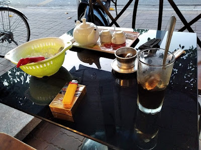 < Gọi ly cà phê đá bên này xong thì đối diện bên kia: Quỳnh Anh mở cửa! Khẹc khẹc, mất bán cho 1 khách ròi. Mấy bữa mình đi, trời khá nóng bức nên buổi sáng không uống đen.